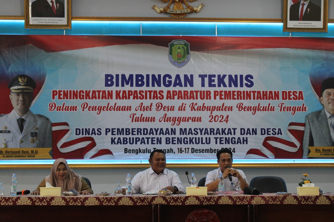 Bengkulu Tengah, MC Benteng - Pemerintah Kabupaten Bengkulu Tengah melalui Dinas Pemberdayaan Masyarakat dan Desa (PMD) melaksanakan Bimbingan Teknis (Bimtek) peningkatan kapasitas aparatur pemerintahan desa dalam pengelolaan aset desa di Kabupaten Bengkulu Tengah. Acara digelar selama dua hari dari tanggal 16 dan 17 Desember 2024 di Aula Puncak Tahura Hotel Bengkuku Tengah. Senin (16/12/2024)