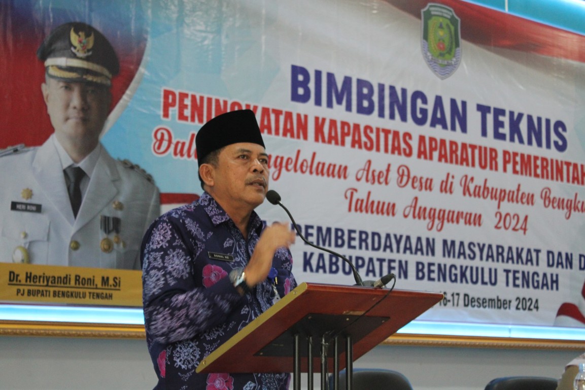 “Aset desa merupakan barang milik desa yang berasal dari kekayaan asli desa, dibeli atau diperoleh atas beban Anggaran Pendapatan dan Belanja Desa (APBDes) atau perolehan hak lainnya yang sah. Selain UU No. 6 Tahun 2014 tentang desa. Aset desa secara terperinci diatur dalam Permendagri No.1 Tahun 2016 tentang Pengelolaan Aset Desa dimana hal ini diubah menjadi Permendagri Nomor 3 Tahun 2024. Adapun jenis aset desa yakni kekayaan asli desa kekayaan milik desa yang dibeli atau diperoleh atas beban APBDes, kekayaan desa yang diperoleh dari hibah dan sumbangan atau yang sejenis, kekayaan desa yang diperoleh sebagai pelaksanaan dari perjanjiana atau kontrak dan atau diperoleh berdasarkan ketentuan perundang-undangan, aset desa hasil kerjasama desa dan kekayaan desa yang berasal dari perolehan lain yang sah. Dengan dilaksanakannya bimbingan teknis pertama kali di Bengkulu Tengah tentang pengelolaan aset desa ini, saya berharap kedepan semua aset desa bisa tertata dengan baik serta pengelolaan aset desa yang merupakan salah satu sumber APBDes bisa berjalan sesuai dengan aturan yang ada,” ujarnya.