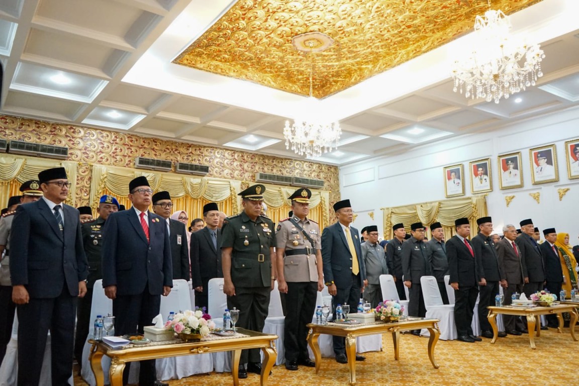 Tampak hadir Jajaran Forkopimda Provinsi, Direktur lembaga keuangan Provinsi, para Sekretaris Daerah Kabupaten/Kota, Kepala OPD di ruang lingkup Provinsi Bengkulu serta tamu undangan lainnya.