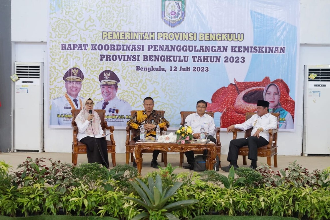 Bengkulu, MC Benteng - Penjabat Bupati Bengkulu Tengah Dr. Heriyandi Roni, M.Si., melalui Asisten Bidang Perekonomian dan Pembangunan Eka Nurmaeni, S.E., M.Pd., menghadiri rapat koordinasi (rakor) penanggulangan kemiskinan bersama seluruh Wakil Bupati/Walikota yang juga merupakan Ketua Tim Koordinasi Penanggulangan Kemiskinan Kabupaten/Kota di Provinsi Bengkulu bertempat di Gedung Serba Guna, Kantor Gubernur Bengkulu. Rabu (12/7/2023)