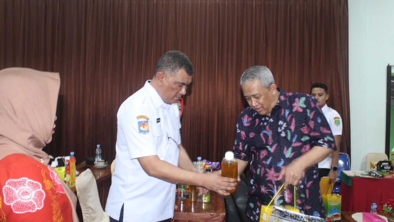 Di akhir acara PJ. Bupati Bengkulu Tengah menyerahkan oleh-oleh berupa olahan jeruk kalamansi kepada narasumber yang telah memberi pembekalan dalam acara pemdampingan teknis produksi dan system keamanan pangan produk olahan jeruk kalamansi di Kabupaten Bengkulu Tengah (Tahap 1) Direktur IKM Pangan Furnitur dan Bahan Bangunan Drs. Yedi Sabaryadi.(MC/AA)