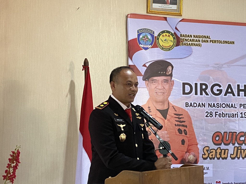 KOTA BENGKULU, MC BENTENG - Badan Nasional Pencarian dan Pertolongan (Basarnas) Bengkulu melangsungkan upacara dalam rangka memperingati hari ulang tahun (HUT) ke-52 di kantor Basarnas Bengkulu, Kamis (28/02/2024)