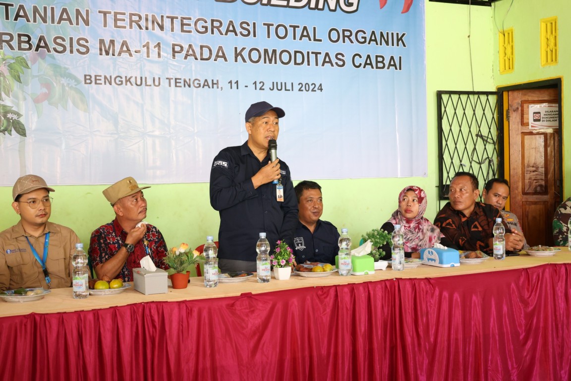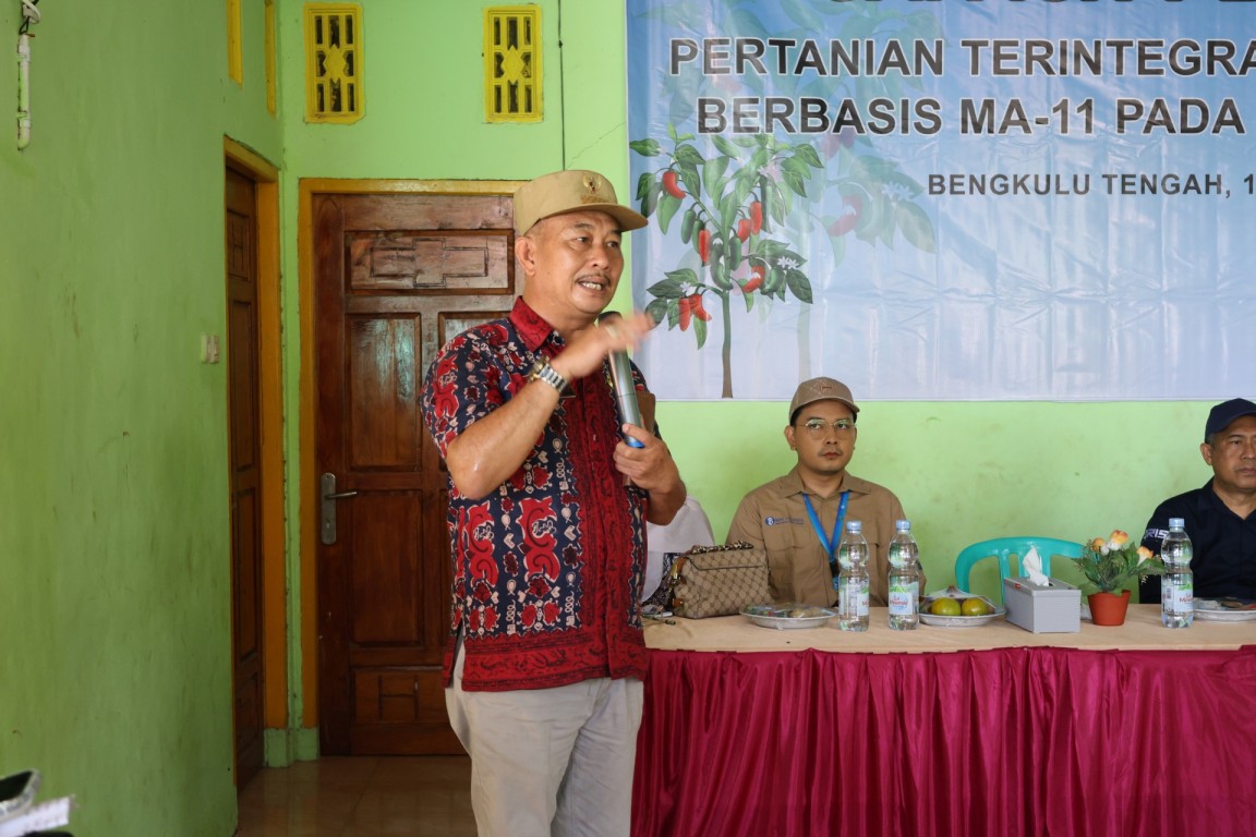 Bengkulu Tengah, MC Benteng - Pemerintah Kabupaten Bengkulu Tengah melalui Staf Ahli Bidang Kemasyarakatan dan SDM Gunawan R, S.E., M.M., menghadiri kegiatan Seremonial penyerahan Fasilitasi Sarana Demplot Cabai dan Pelatihan Pertanian Total Organik berbasis MA 11 Komoditas Cabai oleh Perwakilan Bank Indonesia Provinsi Bengkulu ya g berlangsung di GSG Desa Padang ULAK Tanjung Kecamatan Talang Empat. Kamis (11/7/2024)