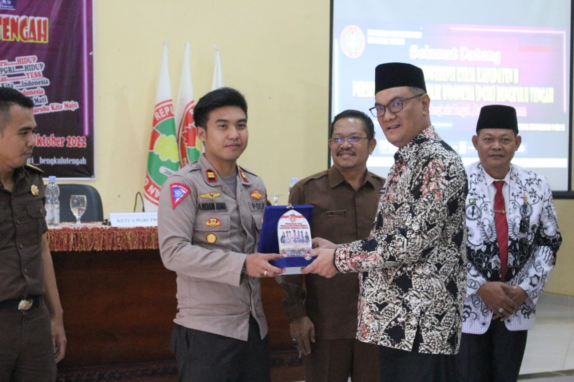 Tampak hadir Ketua Umum PGRI Provinsi Bengkulu Dr. Haryadi, S.Pd.,MM, M.Si, Asisten III Bidang Adm. Umum Bengkulu Tengah H. Elyandes Kori, SE.,M.Si Ketua Komisi I DPRD Bengkulu Tengah Ibnu Hajar dan unsur Forkopimda Bengkulu Tengah serta undangan lainnya.