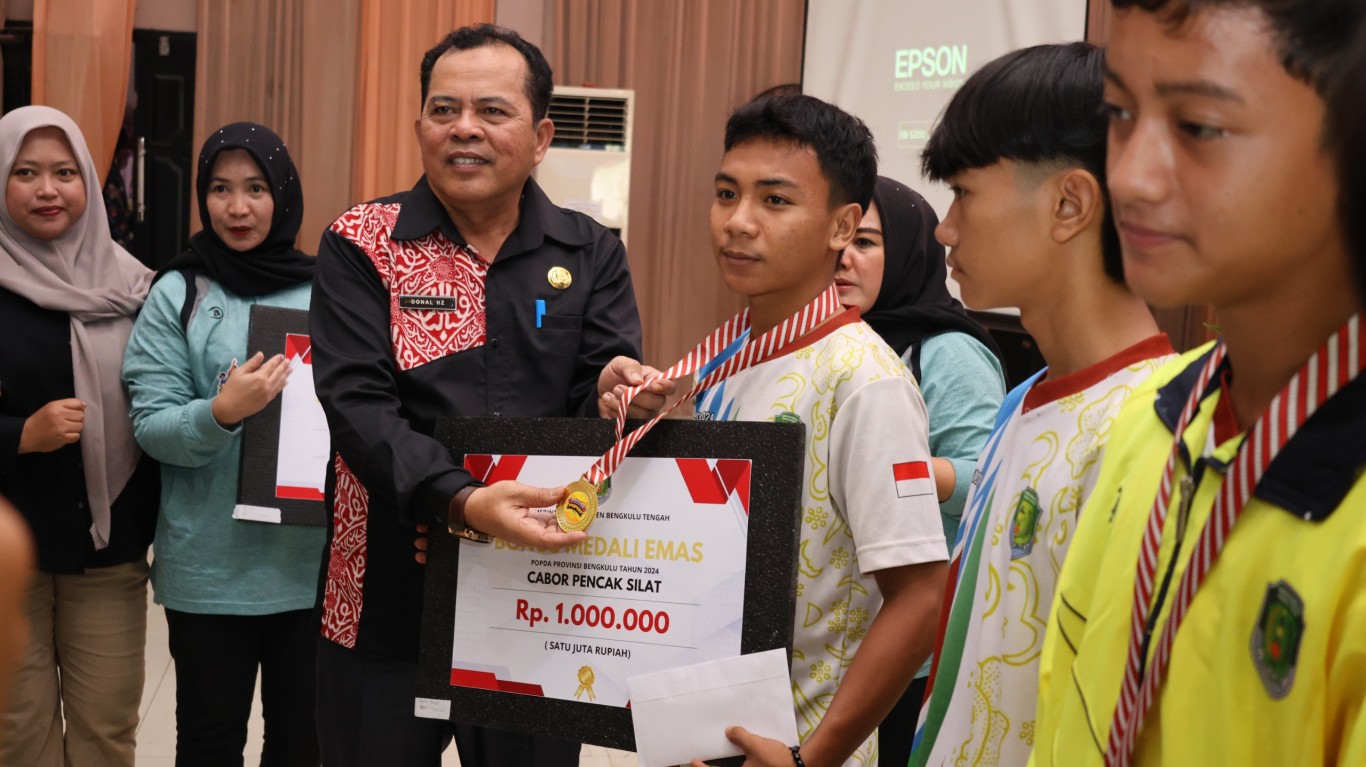 “Pelaksanaan kegiatan hari ini ada 3 agenda yang pertama launching Sport-Eco terdapat empat output diantaranya peluncuran kalender olahraga tahun 2025, peluncuran dokumen desain olahraga daerah 2024-2029 dan pelaksanaan event olahraga terpadu yang akan mulai dilaksanakan pada 10 Desember 2024 mencakup turnamen bola basket, pencak silat, taekwondo dan bola voli. Agenda yang kedua adalah talkshow terkait pengembangan ekosistem olahraga dan agenda ketiga penyerahan penghargaan kepada para atlet dan pelatih berprestasi pada POPDA 2024. Atas prestasi yang telah ditorehkan para atlet dan pelatih Bengkulu Tengah maka Pj Bupati memeberikan apresiasi sebagai motivasi agar para atlet berlatih lebih giat lagi dengan memberikan sertifkat dan uang pembinaan, untuk medali emas perorangan mendapatkan Rp.1.000.0000 juta, medali perak mendapatkan Rp.750.000, dan medali perunggu perorangan mendapatkan Rp.500.000, saya berharap kedepan kita tidak hanya menjadi runner up di Provinsi Bengkulu ini tetapi bisa menjadi juara satu di Provinsi Bengkulu”
