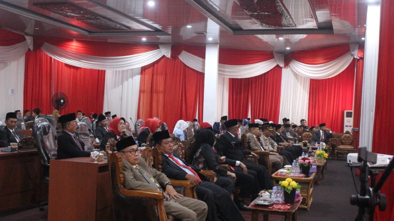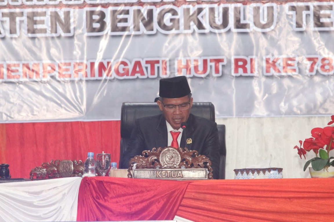 Rapat paripurna tersebut dipimpin langsung oleh Ketua DPRD Kabupaten Bengkulu Tengah Budi Suryantono, S.Sos.,M.Si Didampingi Waka I DPRD Pery Heryandi, S.Sos.,M.Si, Waka II Evi Susanti, S.IP.,M.AP.