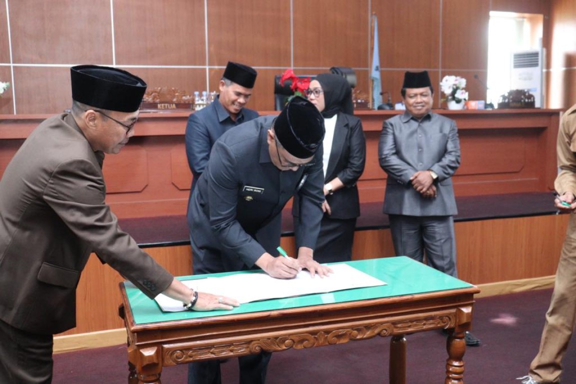 Setelah penyampaian semua fraksi-fraksi DPRD maka dilanjutkan dengan penanda tanganan Raperda APBD Perubahan tahun 2023 oleh lembaga legislatif dan eksekutif.