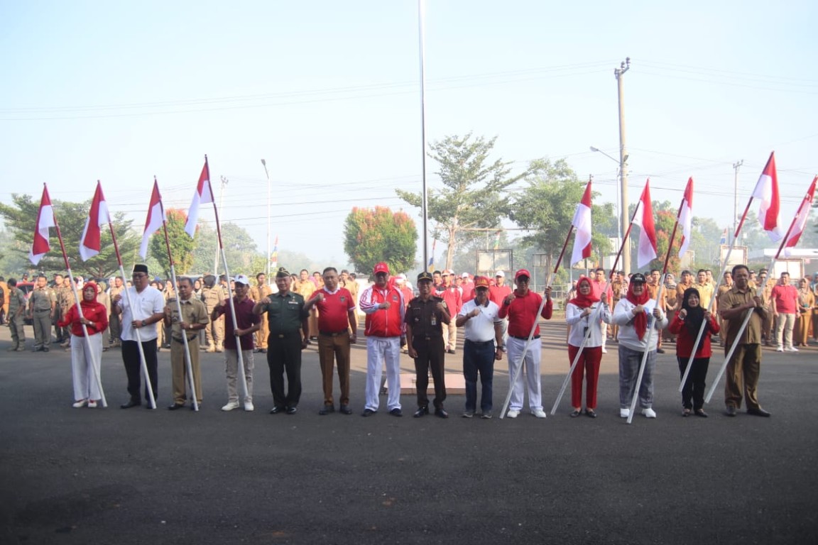 Bengkulu Tengah – Dalam menyukseskan Gerakan Pembagian Bendera Merah Putih Tahun 2023, Pemerintah Kabupaten (Pemkab) Bengkulu Tengah bagikan bendera yang diserahkan oleh PJ Bupati Bengkulu Tengah secara simbolis kepada para camat untuk diteruskan kemasyarakat, Senin ( 07/08/2023).