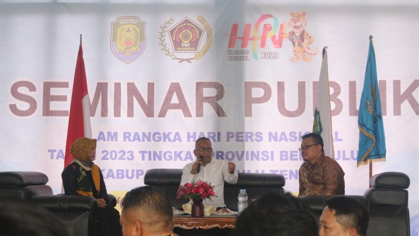 "saya selaku mewakili Pemkab Bengkulu Tengah mengucapkan selamat dan terima kasih karena telah mempercayai Benteng sebagai tuan rumah Pada peringatan Hari Pers Nasional (HPN) bertepatan juga dengan HUT Benteng ke 15. Semoga kedepannya kita dapat menjalin sinergi yang kuat dalam meningkatkan SDM melalui seminar publik ini sehingga dapat memberikan kesejahteraan bagi masyarakat Bengkulu Tengah", ujarnya.