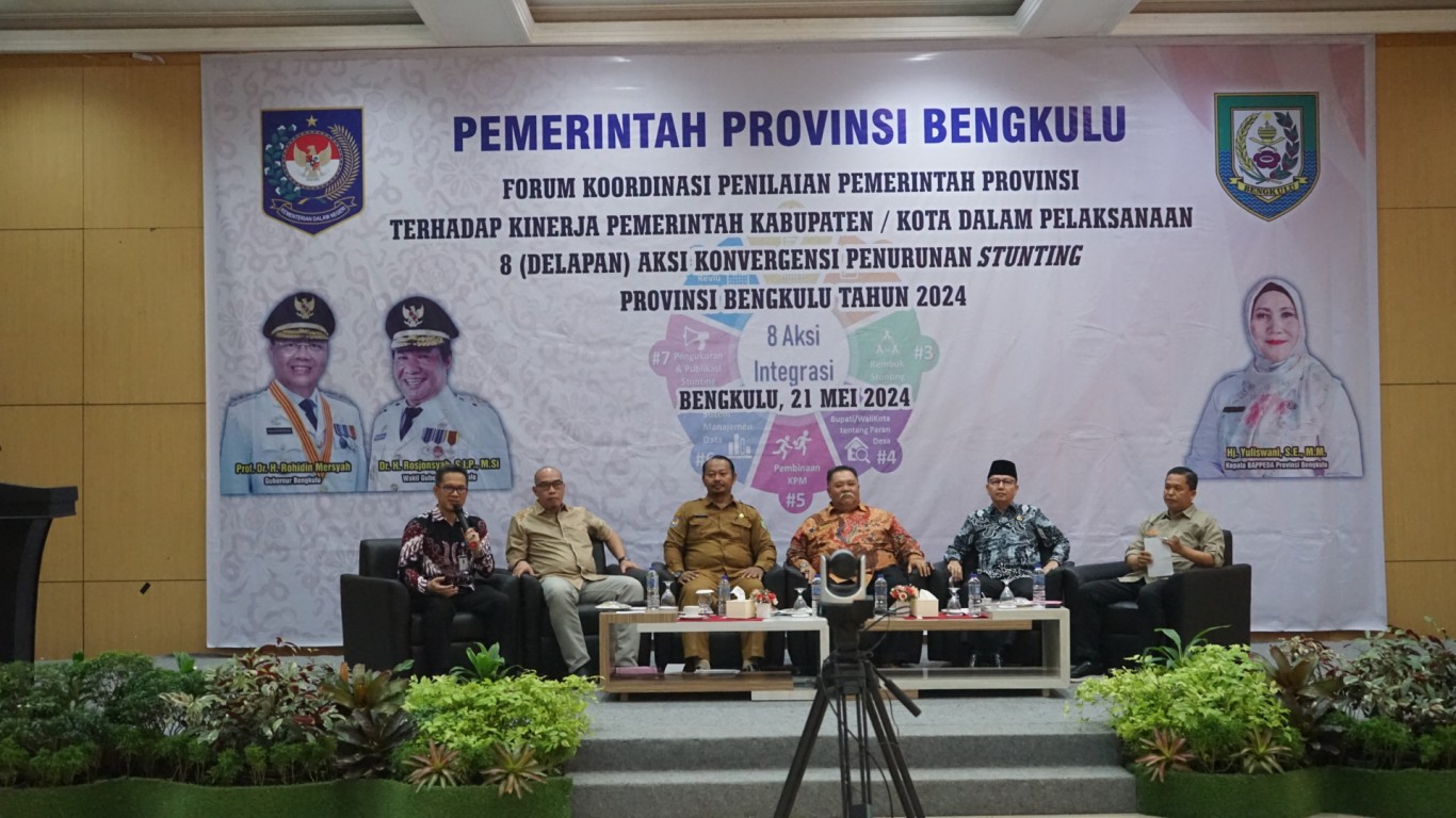 Bengkulu, MC Benteng - Tim Percepatan Penurunan Stunting (TPPS) Bengkulu Tengah mengikuti kegiatan Forum Koordinasi Penilaian (FKP) terhadap kinerja Pemerintah Kabupaten/Kota dalam Pelaksanaan Delapan Aksi Konvergensi Penurunan Stunting di Provinsi Bengkulu tahun 2024.