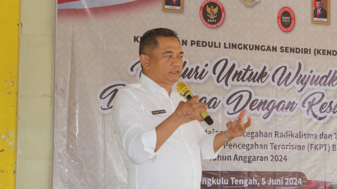 Bengkulu, MC Benteng - Pemerintah Kabupaten Bengkulu Tengah mengikuti kegiatan Kenali dan Peduli Lingkungan Sendiri (KENDURI) untuk wujudkan desa siaga dengan resiliensi yang diselenggarakan oleh Forum Koordinasi Pencegahan Terorisme (FKPT) di Aula Kantor Camat Pondok Kelapa. Rabu (05/06/2024).