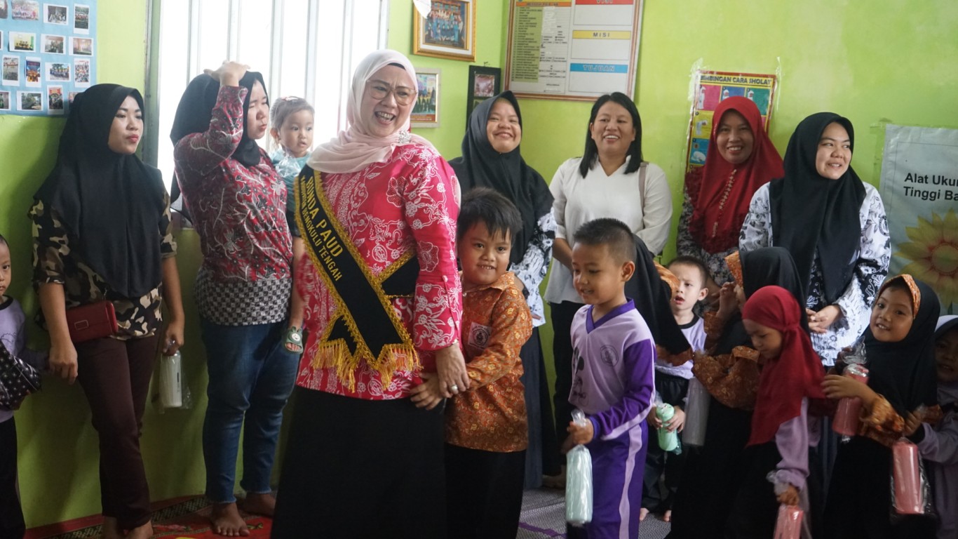 Dalam kunjungan kerjanya Bunda Paud dan Ketua PPAUD Bengkulu Tengah juga memberikan semangat kepada anak-anak di Paud tersebut dengan mengajak belajar dan bermain bersama hingga selesai. (MC/EK)