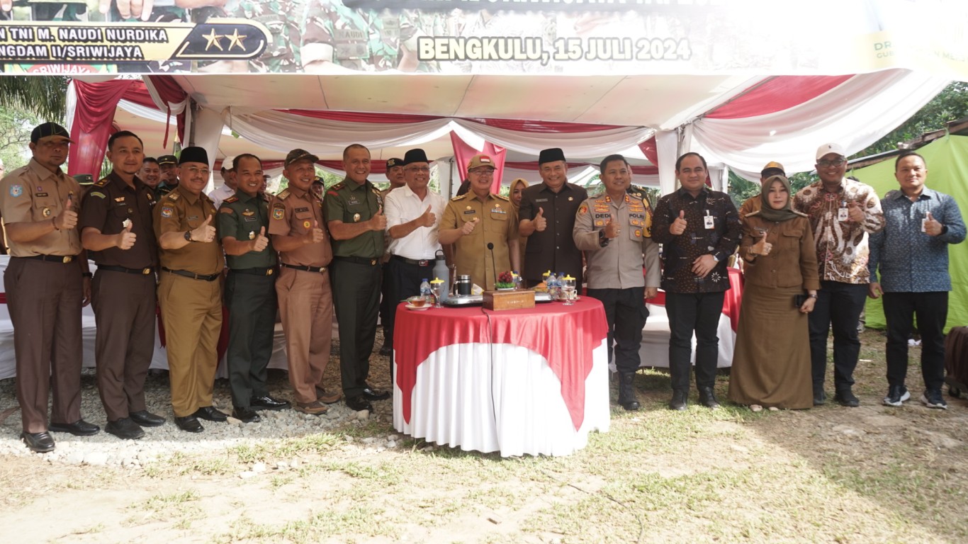 Tampak hadir melalui zoom meeting Pangdam II/SWJ Mayjen TNI Naudi Nurdika. Sementara hadir secara langsung Gubernur Bengkulu H. Rohidin Mersyah, Korem 041/GB Brigjen TNI Rachmat Zulkarnaen, Kapolda Bengkulu melalui Kapolres Bengkulu Tengah AKBP Dedy Wahyudi, Perwakilan Unsur Forkopimda Provinsi Bengkulu, Dandim 0407/KB, para jajaran Pemerintah Provinsi Bengkulu dan Kabupaten Bengkulu Tengah serta undangan lainnya bertempat di Dusun 3 Desa Nakau, Kecamatan Talang Empat. Senin siang (15/7/2024)