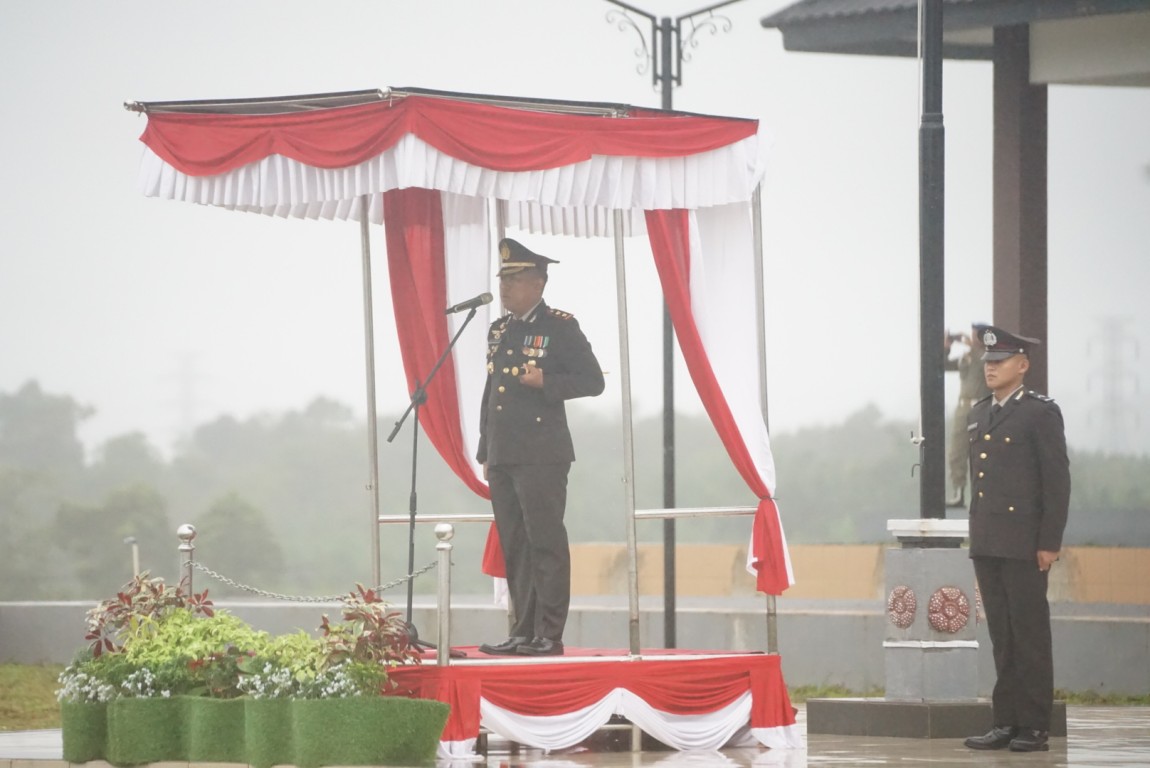 Dalam sambutannya Pj. Bupati menyampaikan bahwa memontum ini akan kita ulang setiap tahunnya, karena Polri merupakan salah satu pilar di negara RI dalam wujud kesatuan dan persatuan rakyat Indonesia. Kita sebagai penerus harus dapat memperkokoh pilar negara ini agar dapat mewujudkan kemakmuran di Negara Kesatuan Republik Indonesia.