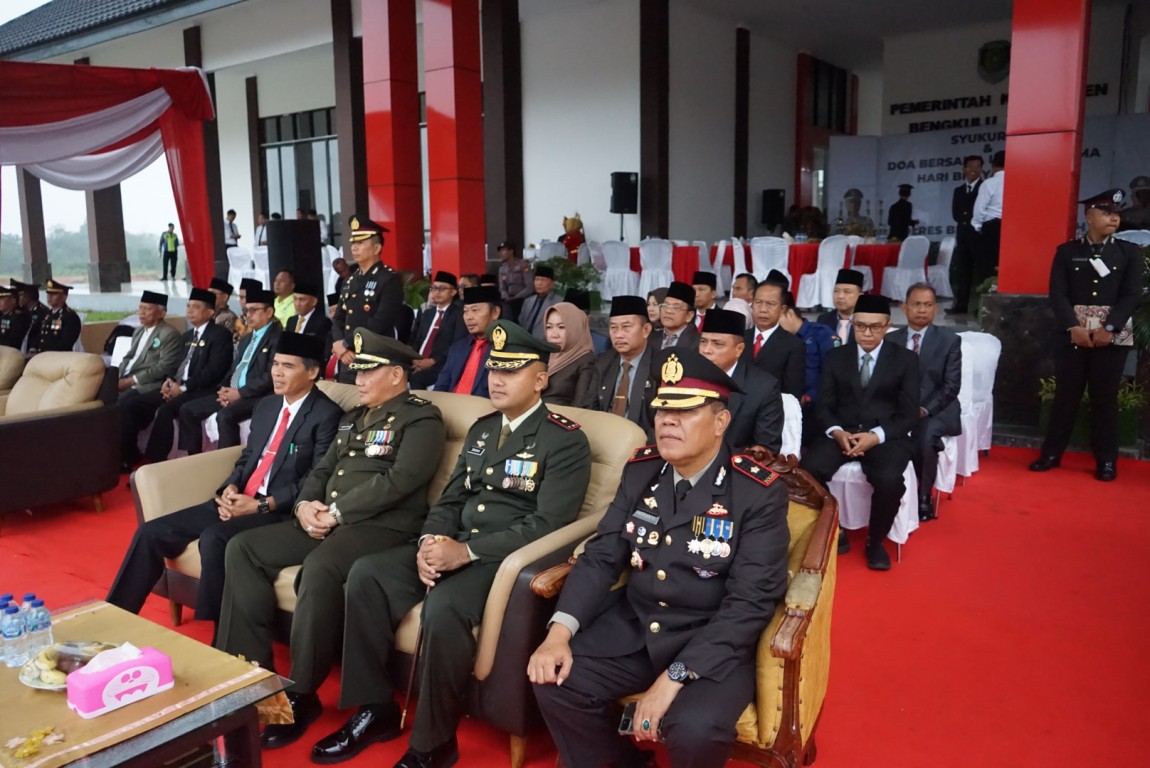 Bengkulu Tengah, MC Benteng - Penjabat Bupati Bengkulu Tengah Dr. Heriyandi Roni, M.Si., menghadiri Upacara sekaligus Syukuran dan doa bersama lintas agama dalam rangka memperingati Hari Ulang Tahun (HUT) Bhayangkara ke-77 bersama Polres Bengkulu Tengah yang bertempat di Halaman Pendopo Bukit Kandis Desa Karang Tinggi. Sabtu pagi (1/7/2023)