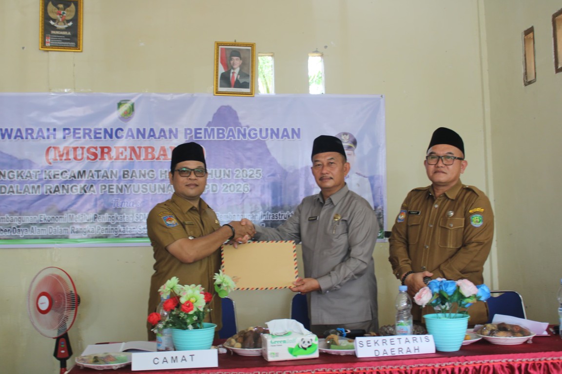Selanjutnya, di Kecamatan Bang Haji kegiatan Musrenbang di buka oleh Staf Ahli Bidang Kemasyarakatan dan SDM, Gunawan R., S.E., MM di dampingi Plt. Kepala Bappeda Hertoni Agus Satria, S.E., M.E., kemudian dihadiri oleh anggota DPRD, beberapa Kepala OPD, Camat, serta Kades di Kecamatan Bang Haji.