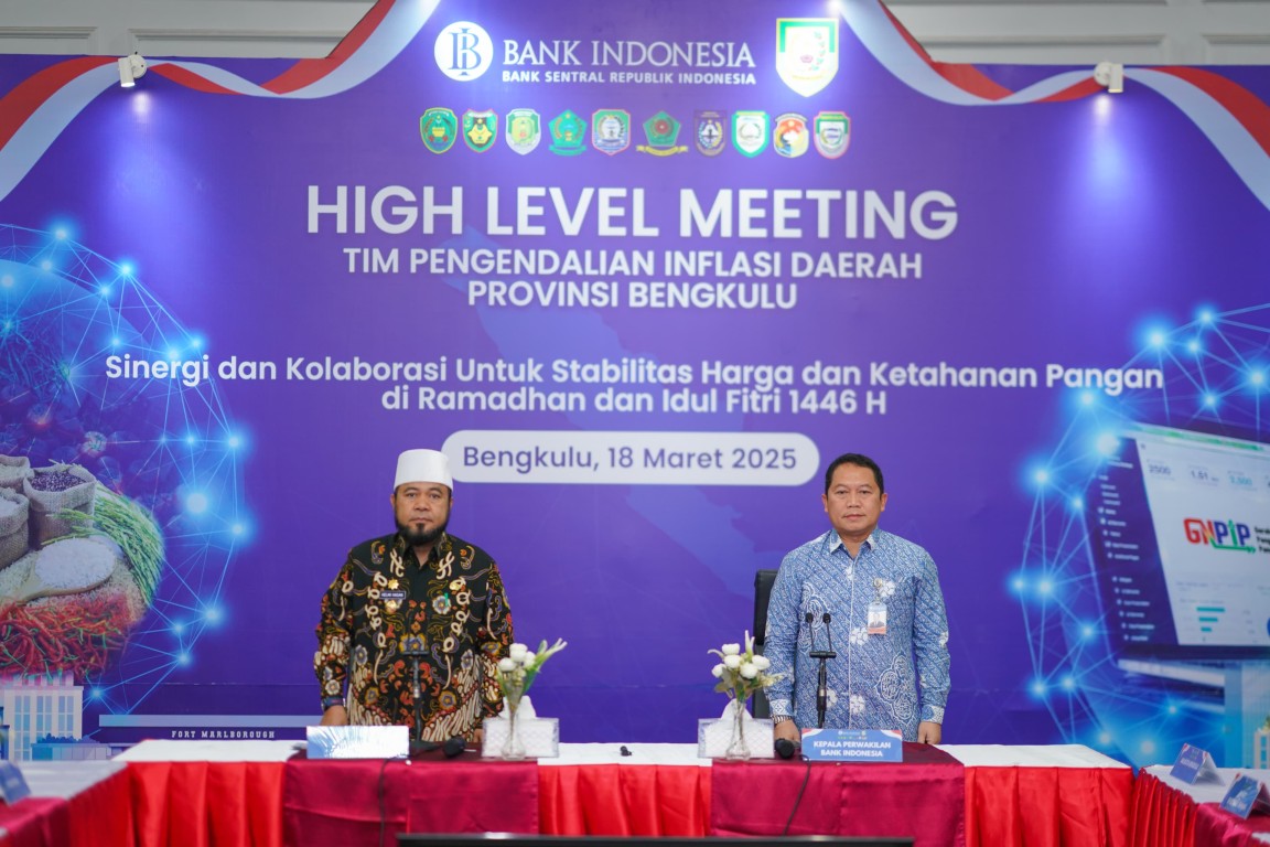 Bengkulu, MC Benteng - Pengendalian Inflasi menjadi fokus utama program kesejahteraan masyarakat, Gubernur Bengkulu H. Helmi Hasan, S.E., melakukan High Level Meeting (HLM) Tim Pengendalian Inflasi Daerah (TPID) bersama seluruh kepala daerah se-Provinsi Bengkulu bertempat di Balai Raya Bengkulu. Selasa (18/3/2025)