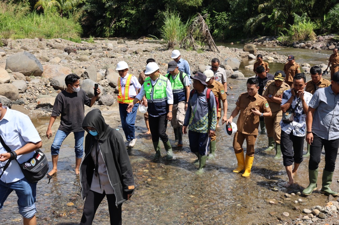 Kedatangan Bupati dan rombongan disambut oleh perangkat desa, pihak kecamatan, serta kelompok tani. Rombongan kemudian menuju titik lokasi bendungan dengan berjalan menyusuri aliran Sungai Rindu Hati untuk melihat secara langsung kondisi bendungan yang kini telah rampung dan siap dimanfaatkan masyarakat.