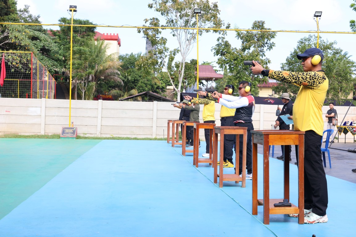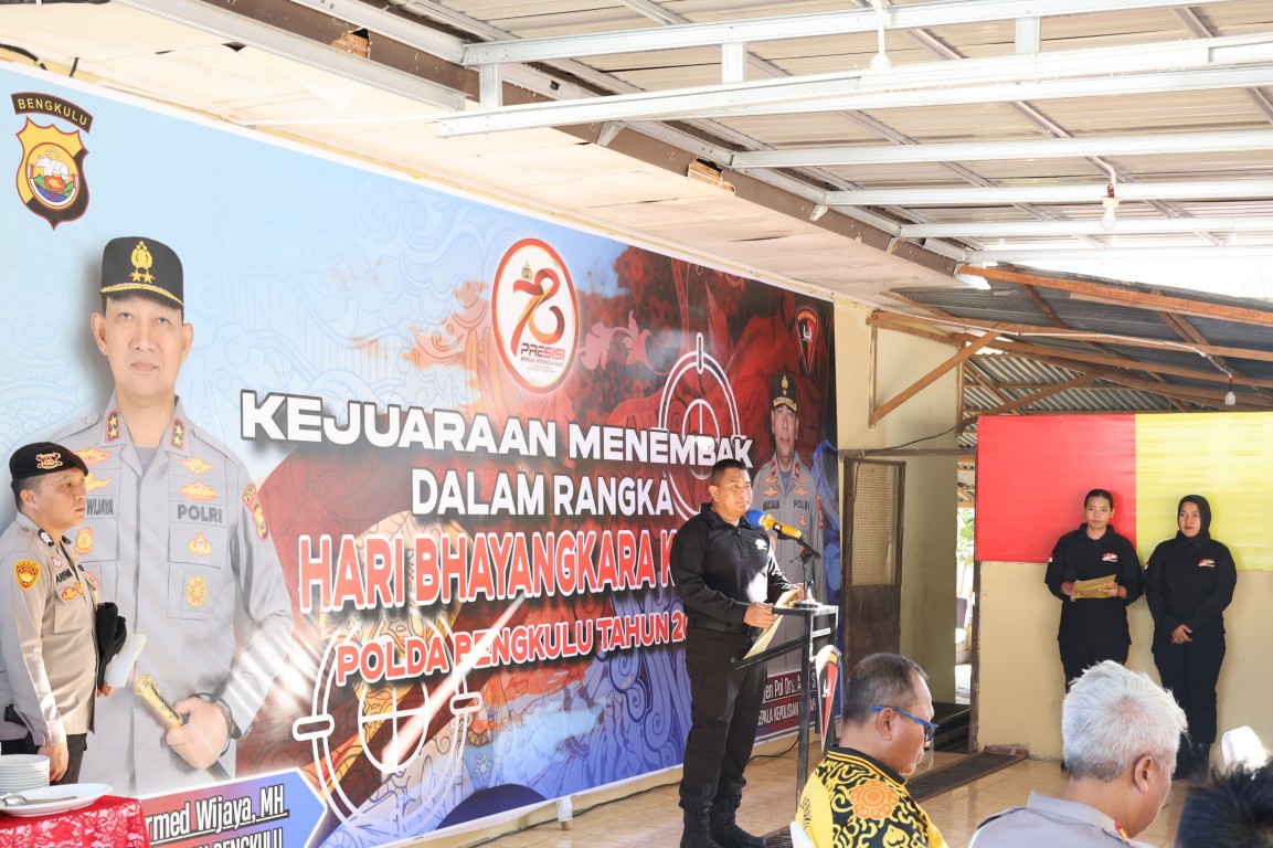 Lomba menembak dimulai dengan 6 orang peserta terdiri dari Wakapolda, Perwakilan Danrem, Danlanal, Kapolres Bengkulu, Perwakilan Gubernur, dan Kabinda.