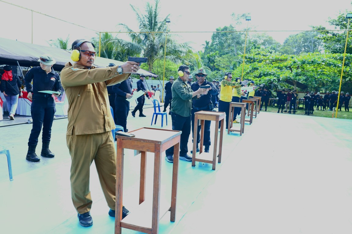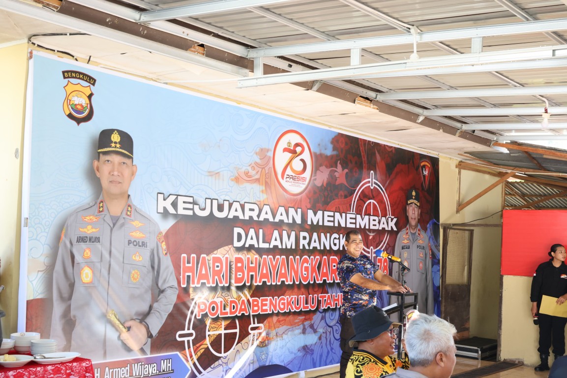 Bengkulu, MC Benteng - Pemerintah Kabupaten Bengkulu Tengah melalui Asisten Pemeritahan Nurul Iwan Setiawan, M.Si menghadiri sekaligus mengikuti Acara Kejuaraan Menembak Dalam Rangka Hari Bhayangkara ke-78 Polda Bengkulu yang berlangsung di Lapangan Tembak Mako Brimob Kota Bengkulu. Selasa (23/07/2024).