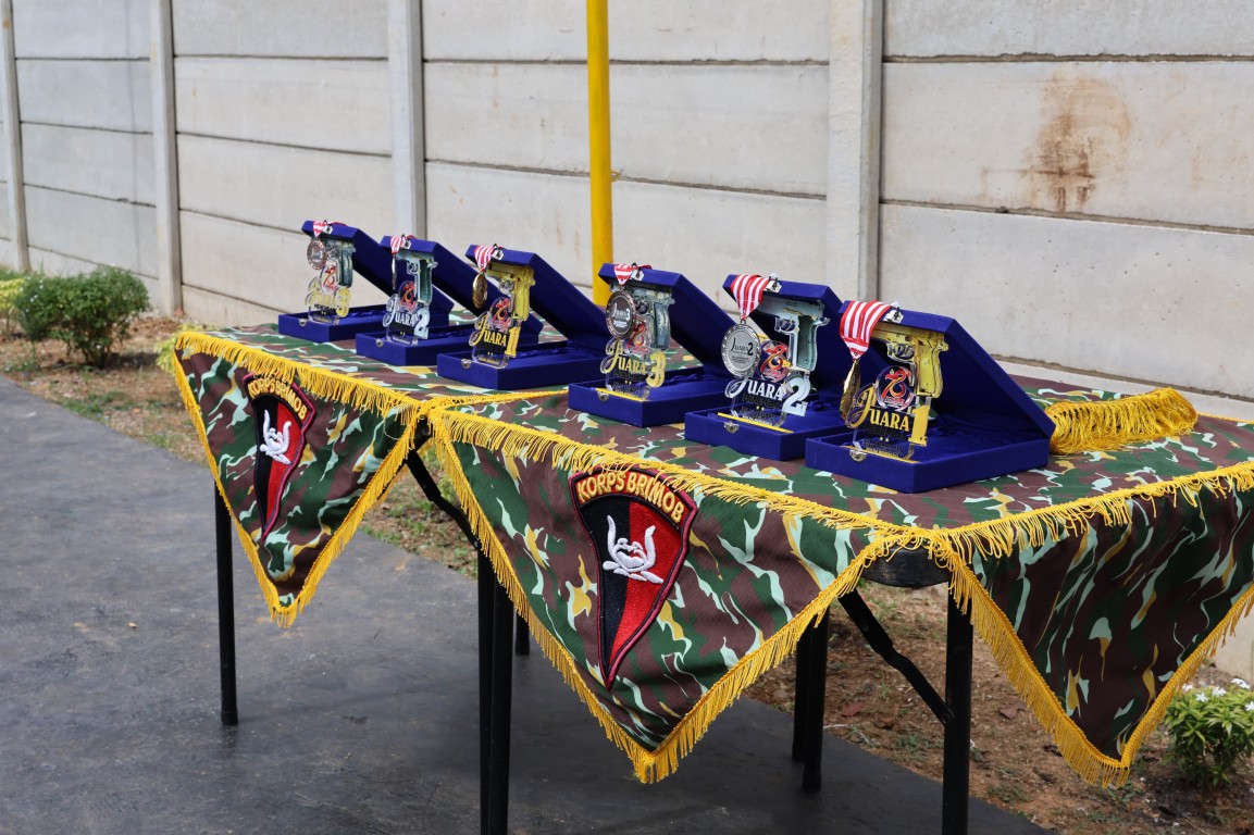 Komandan Satuan (Dansat) Brimob M. Fahri menyampaikan laporan pelaksanaan kegiatan, tujuan kegiatan, dan sistem perlombaan.