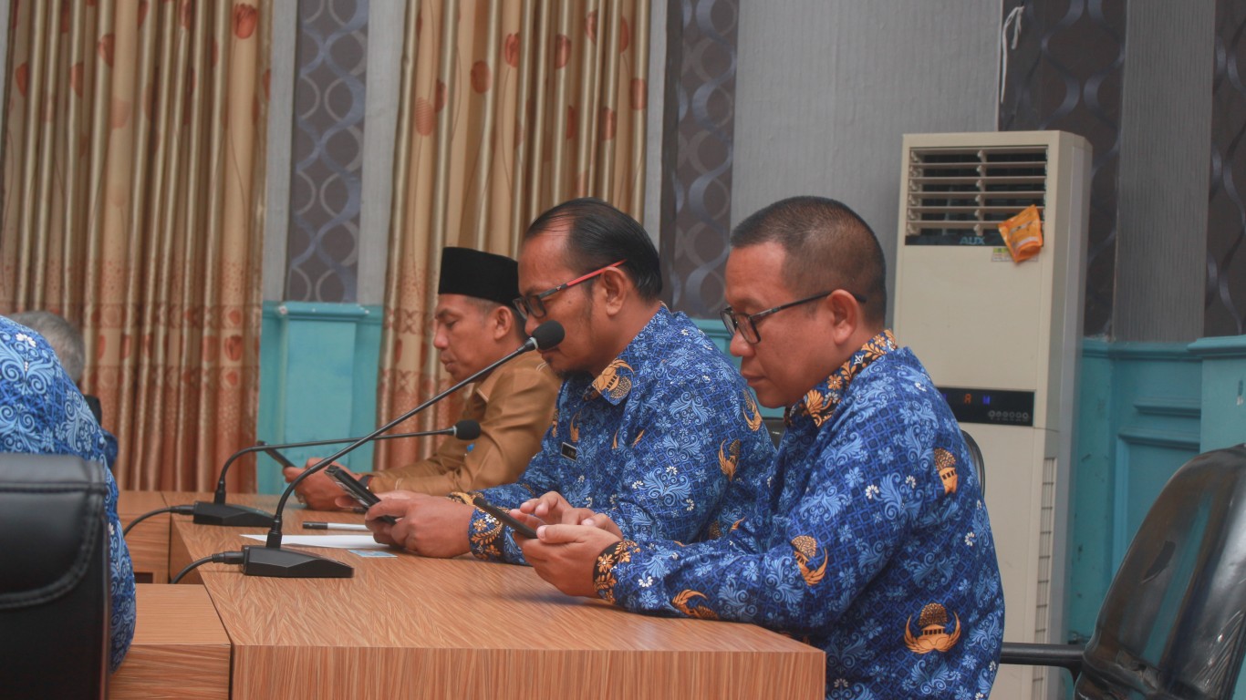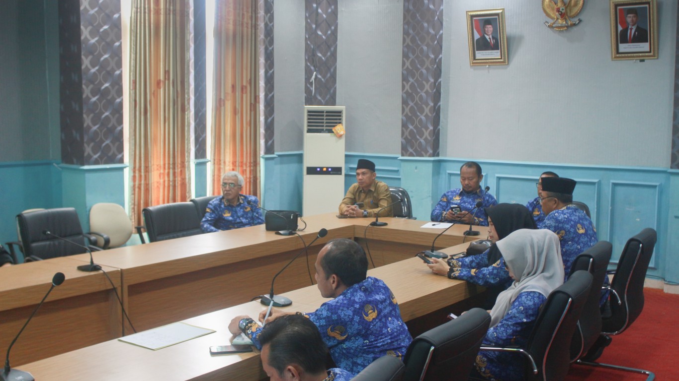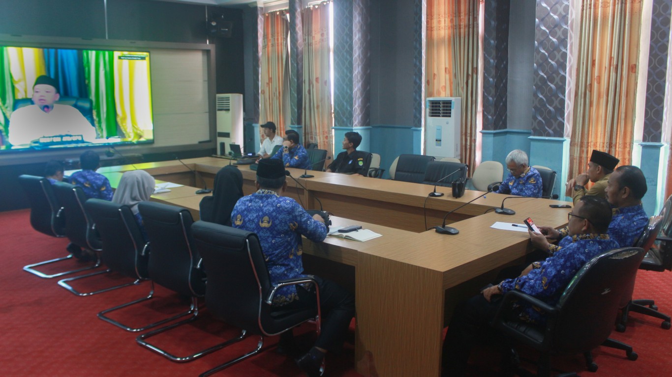 Bengkulu Tengah, MC Benteng - Pemerintah Kabupaten Bengkulu Tengah melalui Staff Ahli Ekonomi Pembangunan Sugeng Oswari S.Kom., M.Si., serta Kepala OPD terkait mengikuti Zoom Meeting Rapat Koordinasi (RAKOR) penyelenggaraan pemerintahan daerah di Ruang Rapat Bupati (RRB) pada Senin (17/03/25).