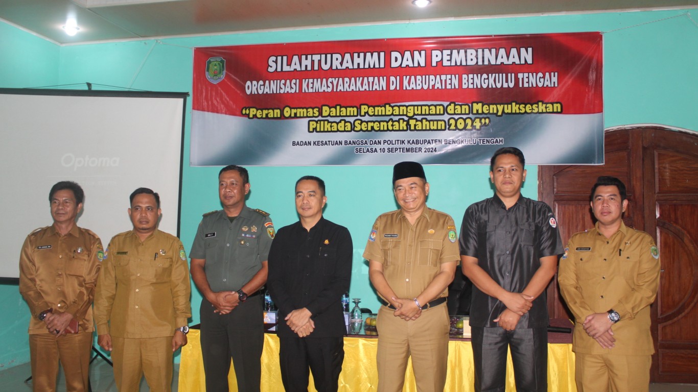 Bengkulu Tengah, MC Benteng - Sekretaris Daerah Bengkulu Tengah Drs. Rachmat Riyanto, S.T.,M.AP., menghadiri acara Silahturahmi dan Pembinaan Organisasi Kemasyarakatan (ORMAS) di Kabupaten Bengkulu Tengah yang diselenggarakan oleh Badan Kesatuan Bangsa dan Politik Kabupaten Bengkulu Tengah di Aula Riung Gunung Talang Empat. Selasa (10/09/2024)