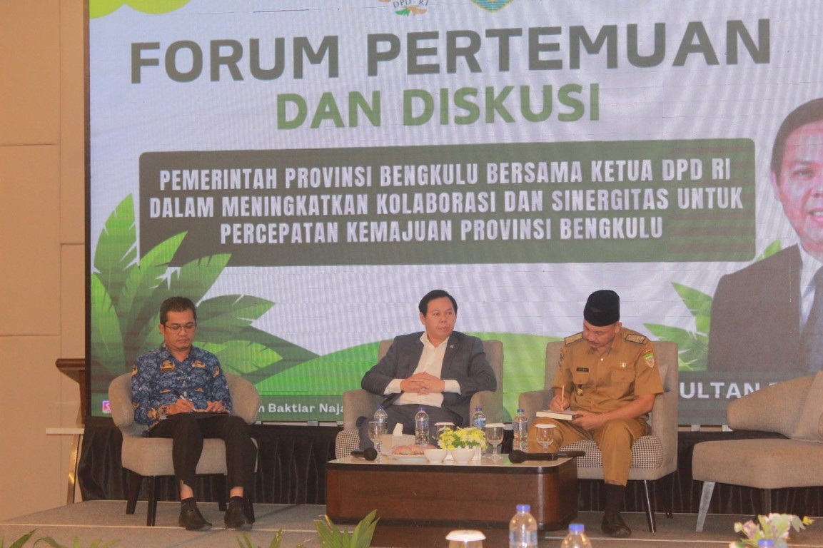 Ketua DPD Republik Indonesia Sultan Baktiar Najamudin, S.Sos., M.Si., dalam sambutannya menyampaikan tujuan dari diskusi bersama para Pemangku Kepentingan di Provinsi Bengkulu.