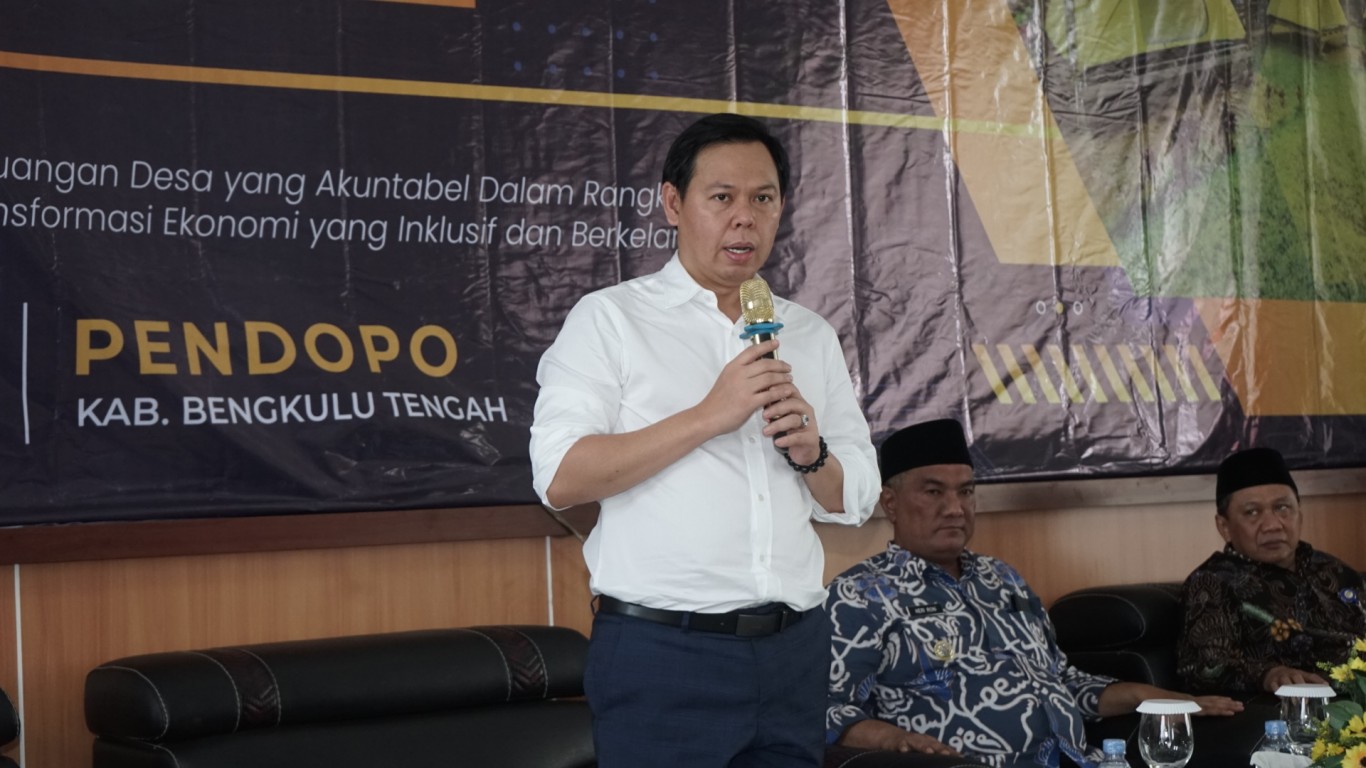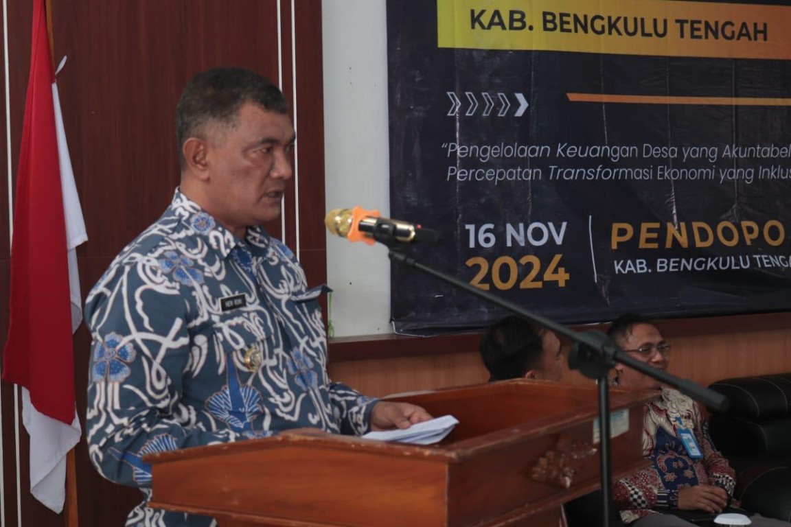 Dalam sambutannya Pj. Bupati Bengkulu Tengah Heri Roni menekankan kepada seluruh peserta untuk dapat mengikuti kegiatan ini dengan baik agar dapat mendapatkan penjelasan dari seluruh narasumber terkait pengelolaan Keuangan dan Pembangunan di Desa.