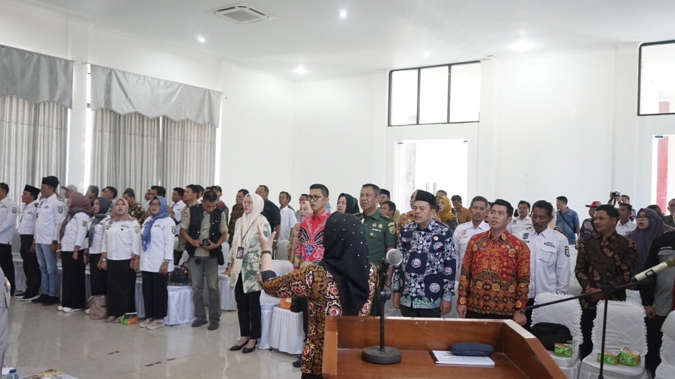 Tampak hadir Dandim 0407/KB Letkol. Inf. Widi Rahman, S.H., M.Si., Kajari Dr. Firman Halawa, S.H., M.H., Wakapolres Kompol Andrianto, S.H., beberapa Kepala OPD, Seluruh Camat dan Kepala Desa di Kabupaten Bengkulu Tengah.