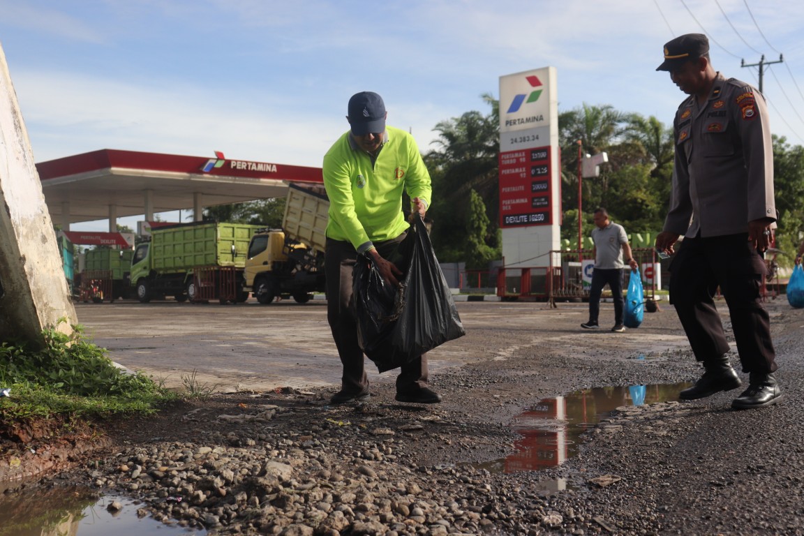 Bengkulu Tengah, MC Benteng - Pemerintah Kabupaten Bengkulu Tengah melaksanakan kegiatan kebersihan jalan dari Depan Mal Pelayanan Publik (MPP) Bengkulu Tengah Desa Nakau hingga Depan Pendopo Bukit Kandis di Desa Ujung Karang. Jum'at (12/1/2024)
