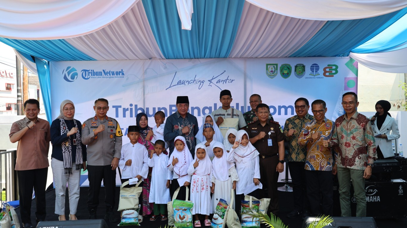 Acara launching ditandai dengan pemotongan tumpeng, potong pita sebagai simbol peresmian gedung baru TribunBengkulu.com dan juga dilakukan penyerahan charity untuk 10 anak panti asuhan Bumi Nusantara.