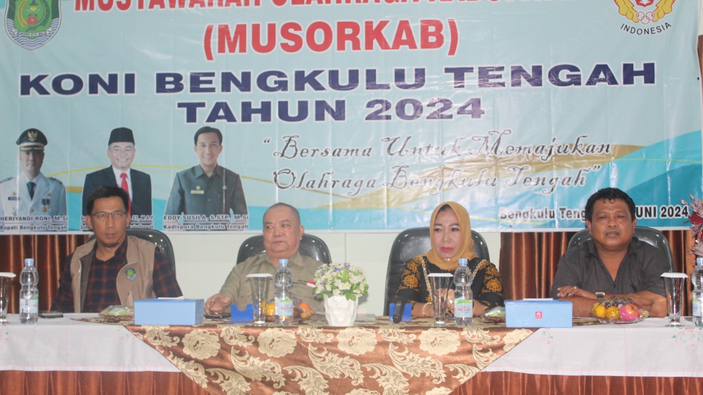 Bengkulu Tengah, MC Benteng - Komite Olahraga Nasional Indonesia (KONI) Kabupaten Bengkulu Tengah menggelar Musyawarah Olahraga Kabupaten (MUSORKAB) Bengkulu Tengah Tahun 2024 yang dilaksanakan di Aula Balai Sindu Kembang Seri Bengkulu Tengah. Sabtu (29/06/2024).