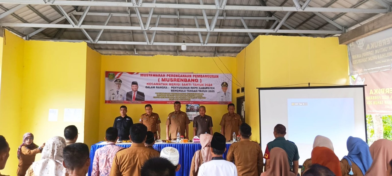 Bengkulu Tengah, MC Benteng - Pemerintah Kabupaten Bengkulu Tengah melalui Badan Perencanaan dan Pembangunan Daerah (Bappeda) melakukan kegiatan Musyawarah Perencanaan Pembangunan (Musrenbang) tingkat kecamatan di Kecamatan Merigi Sakti. Senin Siang (29/1/2024)