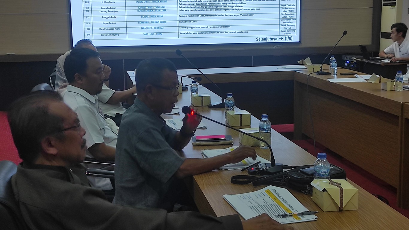 Sekretaris Daerah Kabupaten Bengkulu Tengah, Drs. Tomi Marisi, M.Si, menyampaikan bahwa pembahasan saat ini telah memasuki tahap akhir. Draft penetapan nama ruas jalan sebelumnya telah disosialisasikan kepada tokoh masyarakat dan diharapkan rekan-rekan media untuk disampaikan secara luas kepada masyarakat.