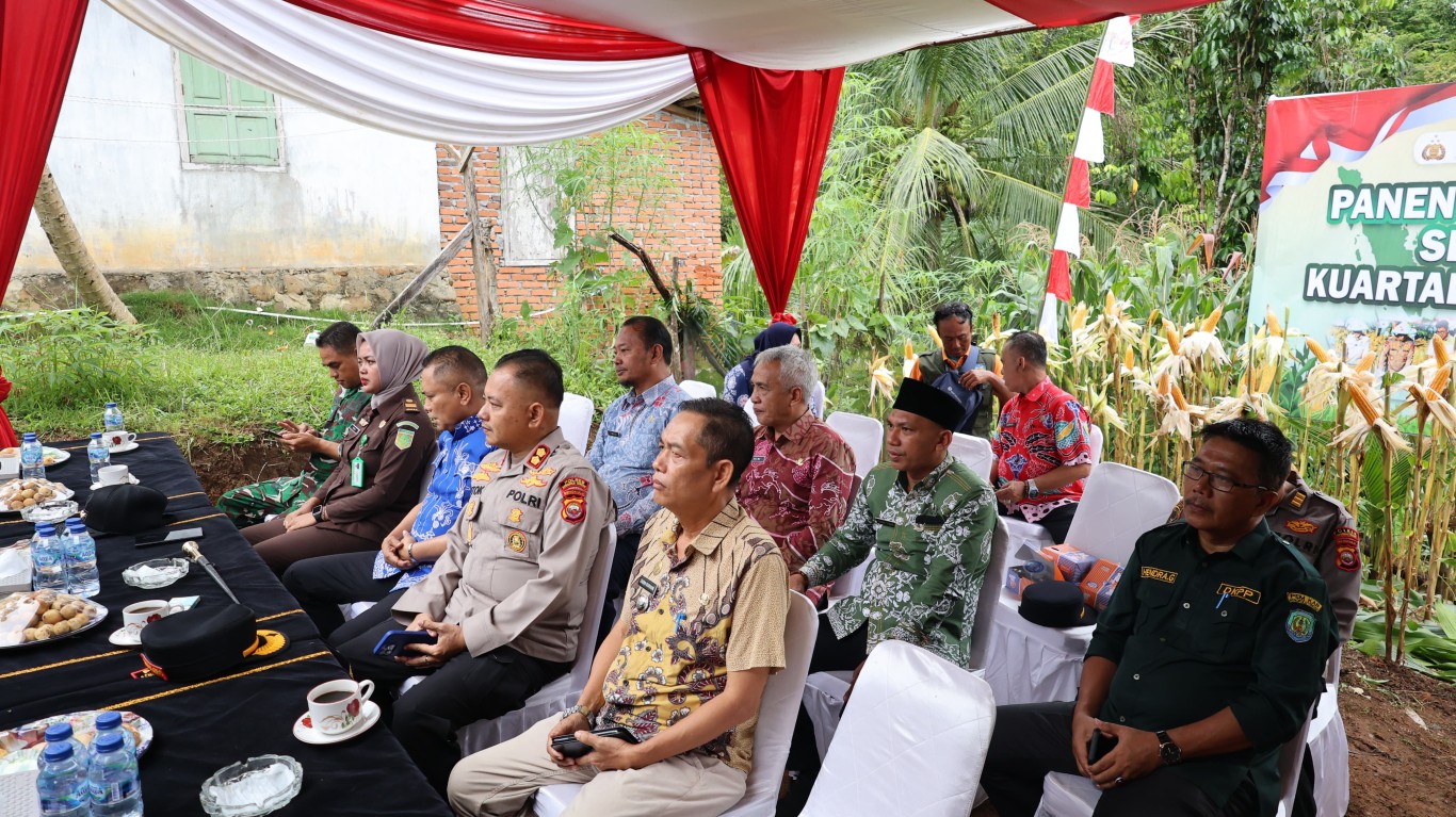 Lebih lanjut, Kapolres menambahkan bahwa lahan jagung yang dipanen merupakan lahan seluas kurang lebih 15 hektare milik warga Desa Karang Tengah. Untuk mendukung stabilitas harga dan penyerapan hasil panen petani, hasil panen jagung tersebut telah dilakukan nota kesepahaman (MoU) dengan Perum Bulog dan selanjutnya akan disalurkan ke Bulog.