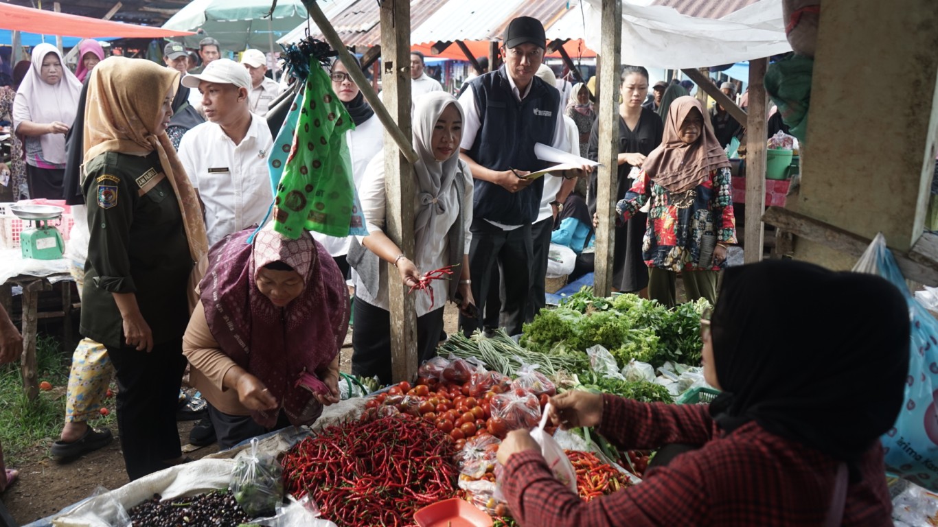 Bengkulu Tengah, MC Benteng - Pemerintah Kabupaten Bengkulu Tengah melalui Asisten Bidang Perekonomian dan Pembangunan Eka Nurmaeni, S.E., M.Pd., di dampingi Tim Pengendalian Inflasi Daerah (TPID) melakukan Sidak Pasar dalam rangka pemantauan harga sembako di Kabupaten Bengkulu Tengah berlokasi di Pasar Mingguan Karang Tinggi. Rabu (7/8/2024)