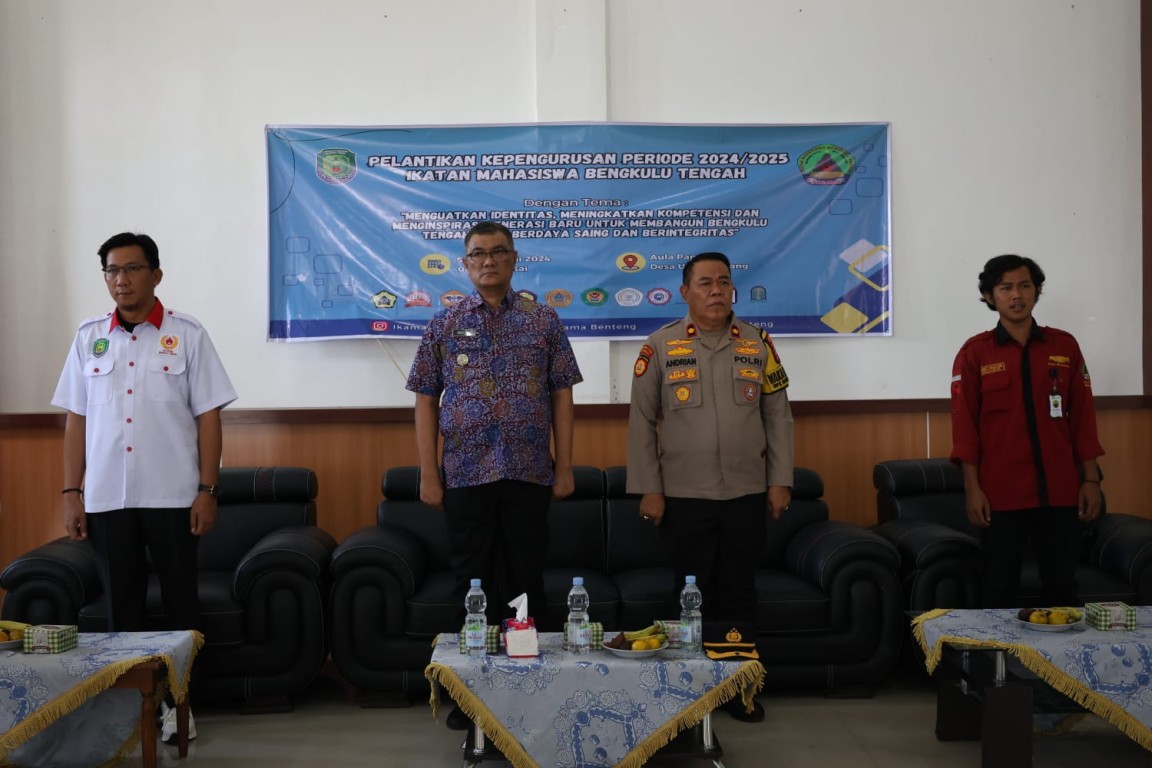 Bengkulu Tengah, MC Benteng - Penjabat Bupati Bengkulu Tengah Dr. Heriyandi Roni, M.Si., menghadiri Pelantikan Kepengurusan Ikatan Mahasiswa (IKAMA) Kabupaten Bengkulu Tengah masa Bhakti 2024 - 2025 yang berlangsung di Aula Pendopo Bukit Kandis Kecamatan Karang Tinggi. Sabtu (13/7/2024)