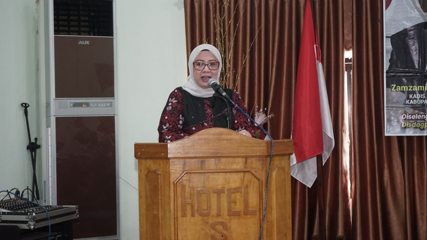 Turut hadir Kadis Perindag Kop Zamzami Syafe'i, S.IP., M.Si., Owner Pengrajin Batin dari Tampuk Manggis Jambi Kiftiah, Pengurus Dekranasda Bengkulu Tengah serta para peserta pelatihan pengrajin Batik.