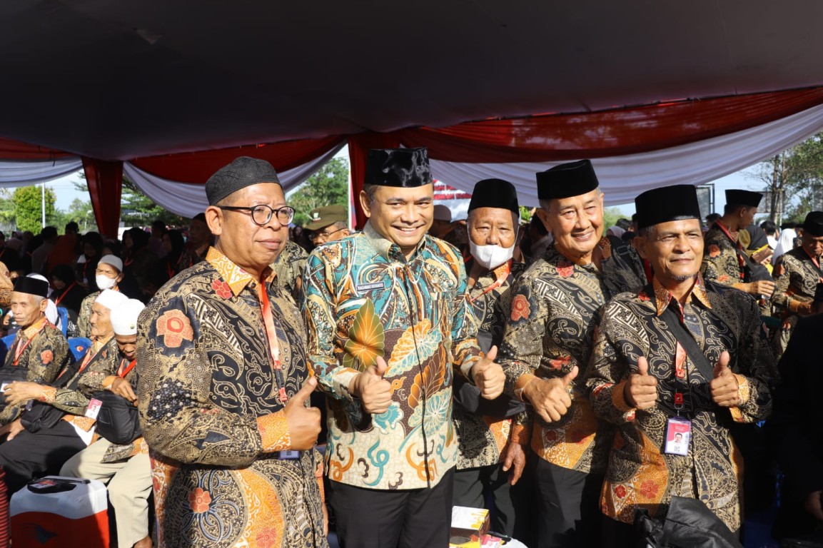 Bengkulu Tengah, MC Benteng - Sekretaris Daerah Kabupaten Bengkulu Tengah Drs. Rachmat Riyanto S.T., M.AP melakukan pelepasan secara resmi 94 orang Calon Jemaah Haji (CJH) tahun 2023 Masehi / 1444 Hijriah asal daerah Kabupaten Bengkulu Tengah yang berlangsung di halaman Kantor Bupati Bengkulu Tengah. Sabtu pagi (10/6/2023)