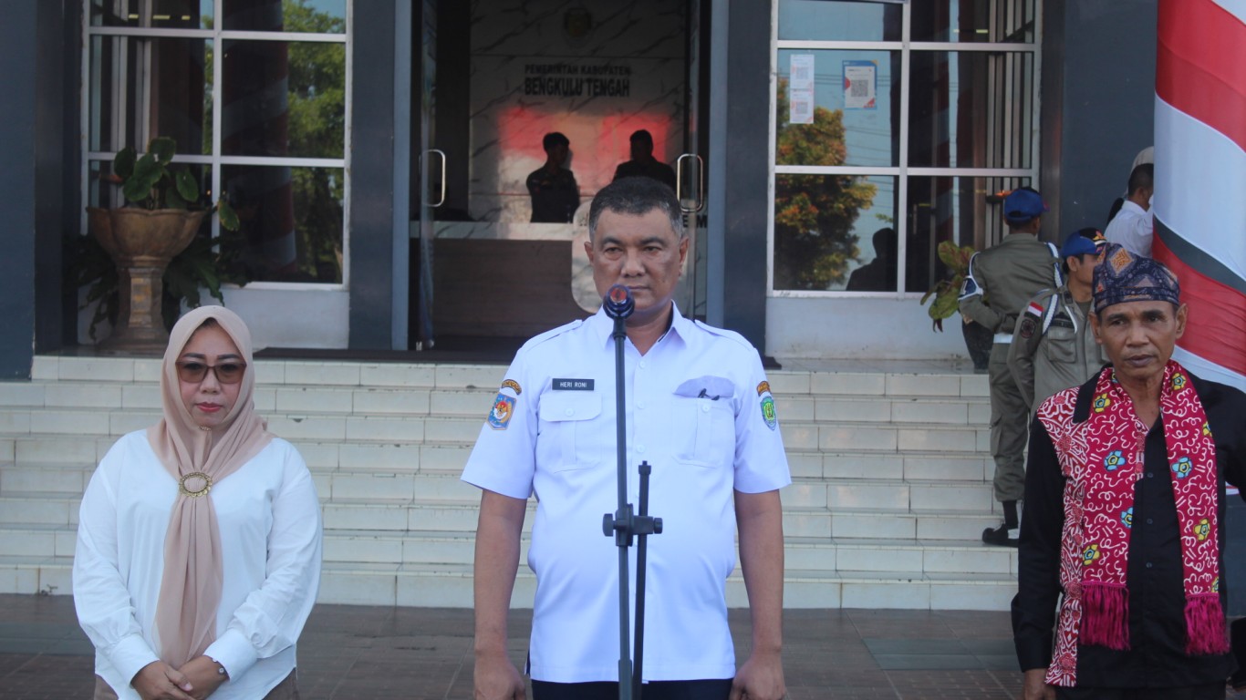 PJ. Bupati Bengkulu Tengah Dr. Heriyandi Roni, M.Si., dalam sambutannya menyampaikan semangat bertarung untuk para kontigen Festival Tunas Bahasa Ibu (FTBI) Bengkulu Tengah di tingkat Provinsi Bengkulu.