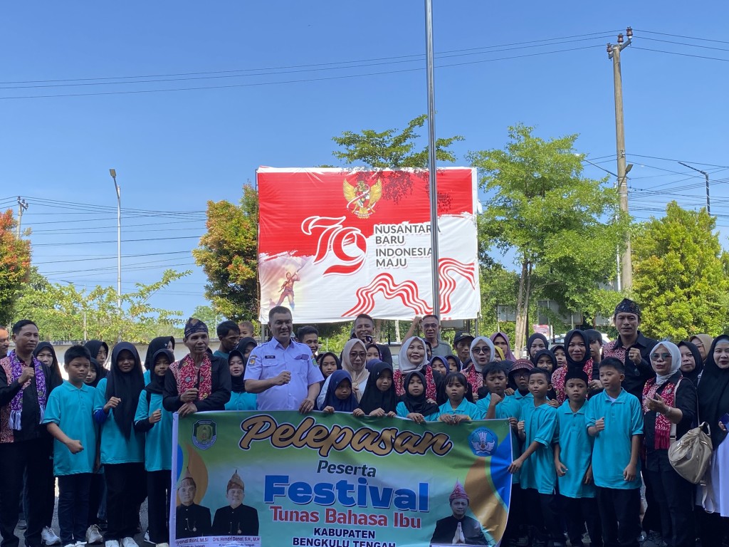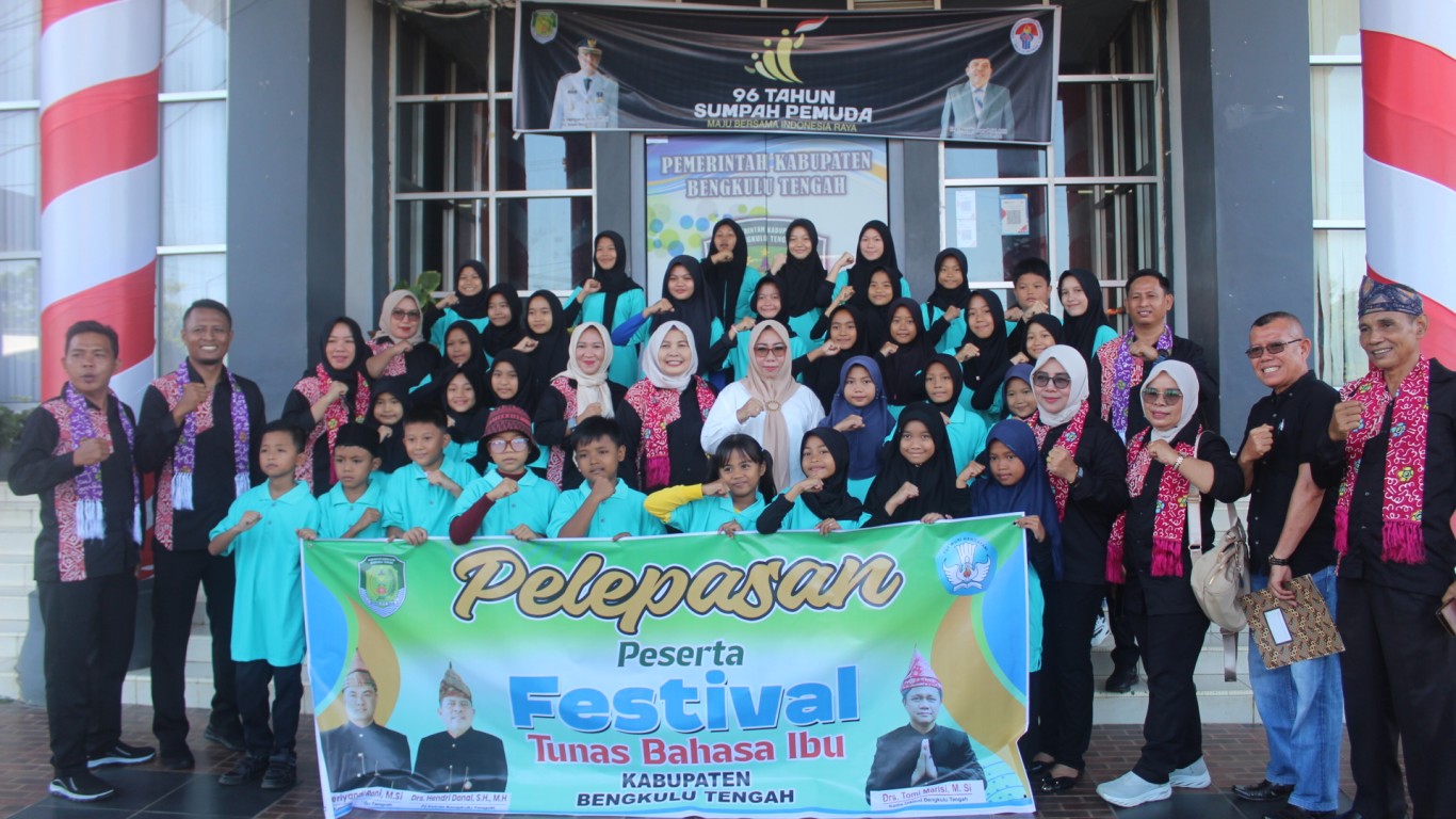 Bengkulu Tengah, MC Benteng - Pemerintah Kabupaten Bengkulu Tengah melalui Dinas Pendidikan dan Kebudayaan Bengkulu Tengah melakukan pelepasan peserta Festival Tunas Bahasa Ibu (FTBI) Bengkulu Tengah Tingkat Provinsi Bengkulu di Halalaman Kantor Bupati Bengkulu Tengah, Rabu (13/11/2024).