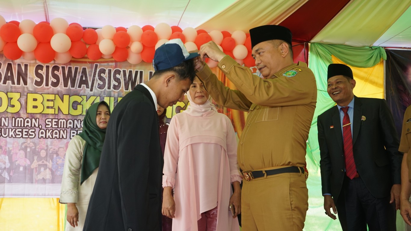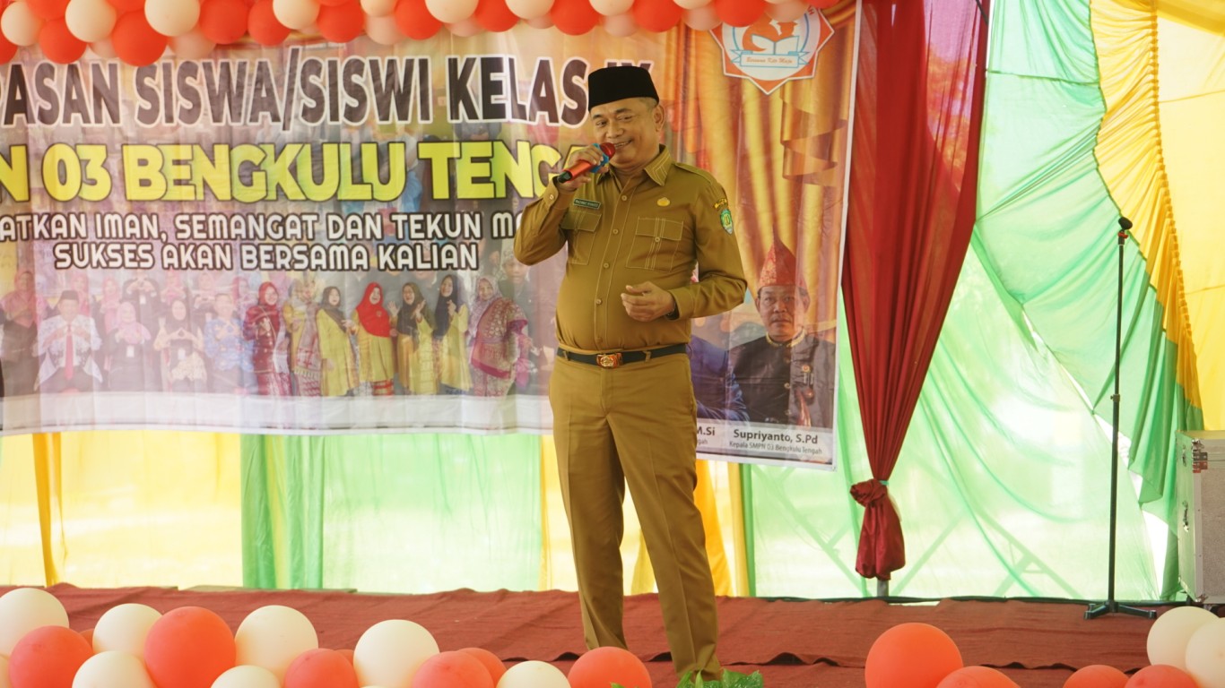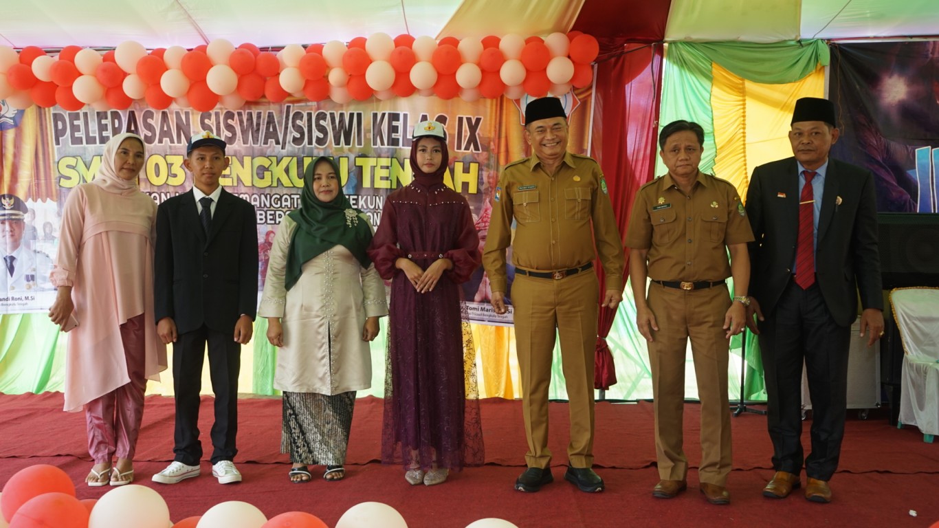Bengkulu Tengah, MC Benteng - Sekretaris Daerah Bengkulu Tengah Drs. Rachmat Riyanto, S.T., M.AP. menghadiri pelepasan siswa-siswi Sekolah Menengah Pertama (SMP) Negeri 3 Kabupaten Bengkulu Tengah bertempat di Lapangan SMP Negeri 3 Kecamatan Talang Empat. Selasa (4/6/2024)