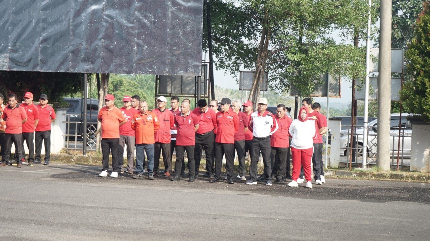 Bengkulu Tengah, MC Benteng - Pemerintah Kabupaten Bengkulu Tengah melalui Badan Kesatuan Bagian Politik (Kesbangpol) melakukan upacara kegiatan gerakan pembagian Bendera Merah Putih dalam rangka menyambut Peringatan HUT Ke-79 Kemerdekaan Republik Indonesia yang berlangsung di Halaman Kantor Bupati. Rabu Pagi (31/7/2024)