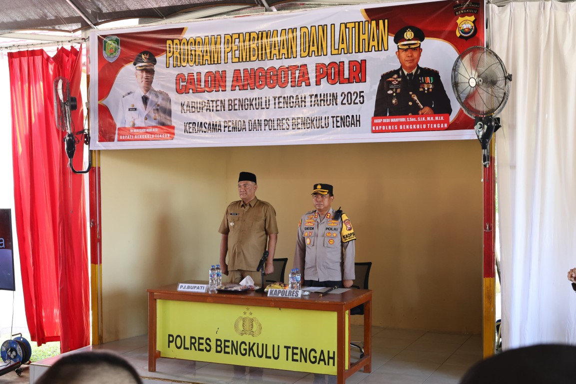 Dalam kegiatan tersebut Pj Bupati Bengkulu Tengah Heri Roni menyampaikan dukungan dan motivasi untuk seluruh peserta binlat calon anggota polri tahun 2025.