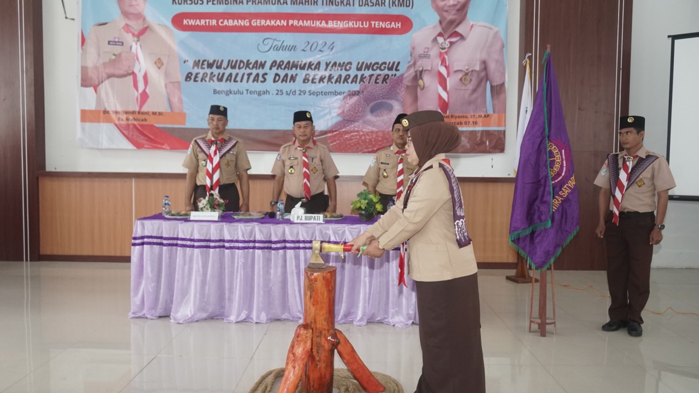 Bengkulu Tengah, MC Benteng - Pemerintah Kabupaten Bengkulu Tengah melalui Staf Ahli Bidang Kemasyarakatan dan SDM Gunawan R , S.E., M.M., membuka kegiatan Kursus Pembina Pramuka Mahir Tingkat Dasar (KMD) Kwartir Cabang Pramuka 0710 Bengkulu Tengah yang berlangsung di Pendopo Bukit Kandis. Rabu (25/9/2024)