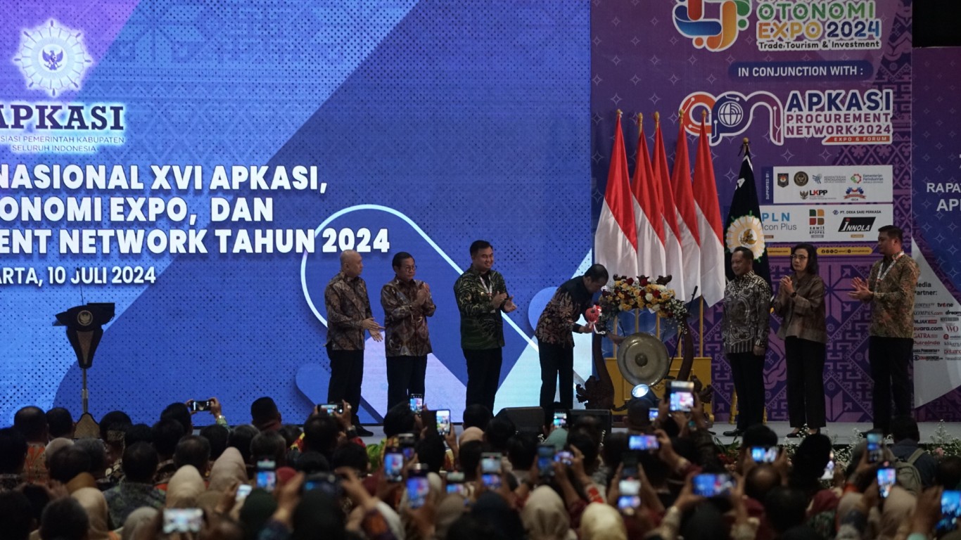 Ketua Umum APKASI Sutan Riska menyampaikan ucapan terimakasih dan apresiasi Kepada Presiden Jokowi yang selalu memberikan perhatian kepada APKASI dan selalu hadir dalam setiap rangkaian kegiatan besar APKASI.