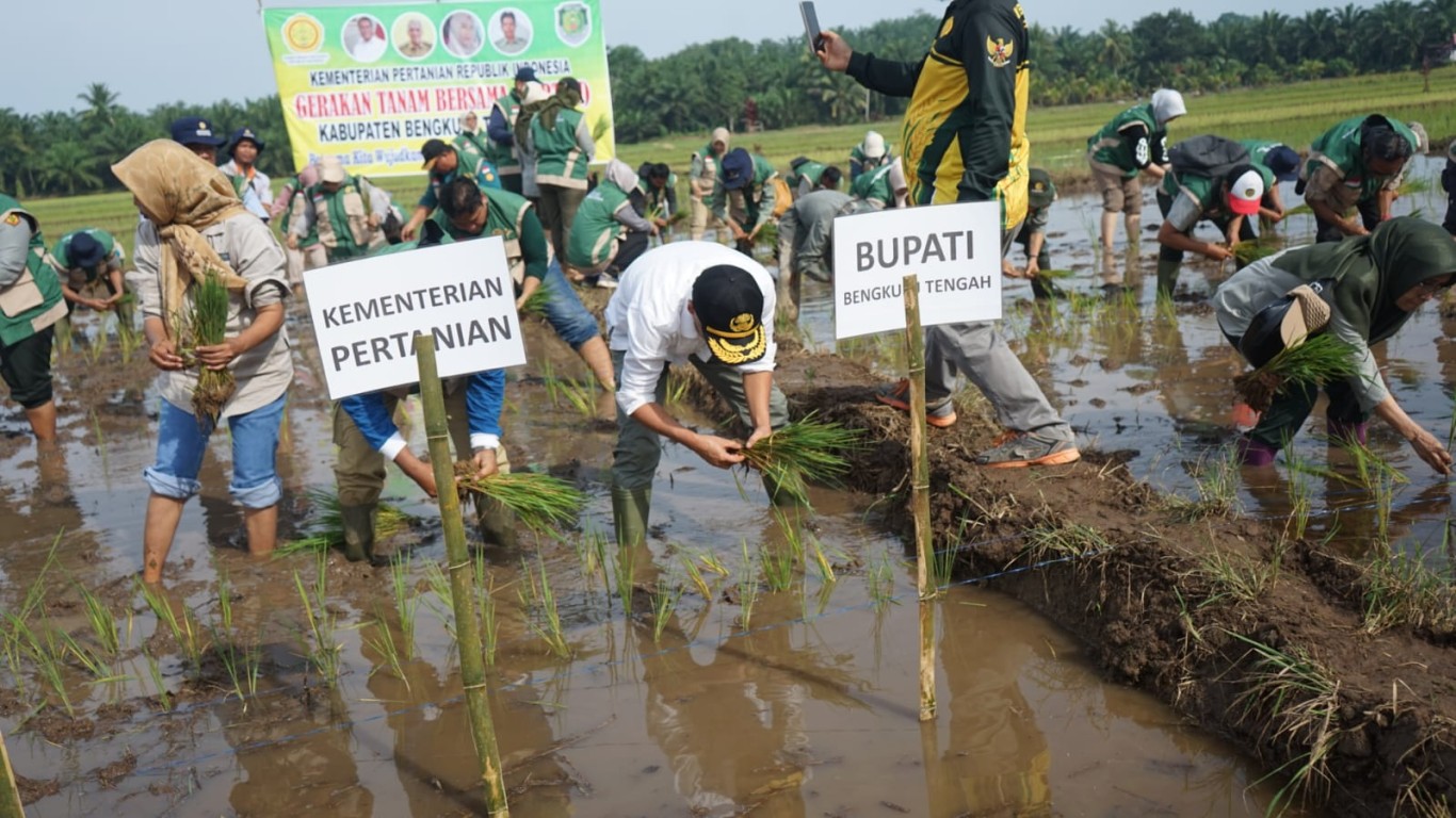 Gerakan tanam bersama ini merupakan salah satu upaya dalam mewujudkan swasembada pangan berkelanjutan melalui peningkatan produksi padi.