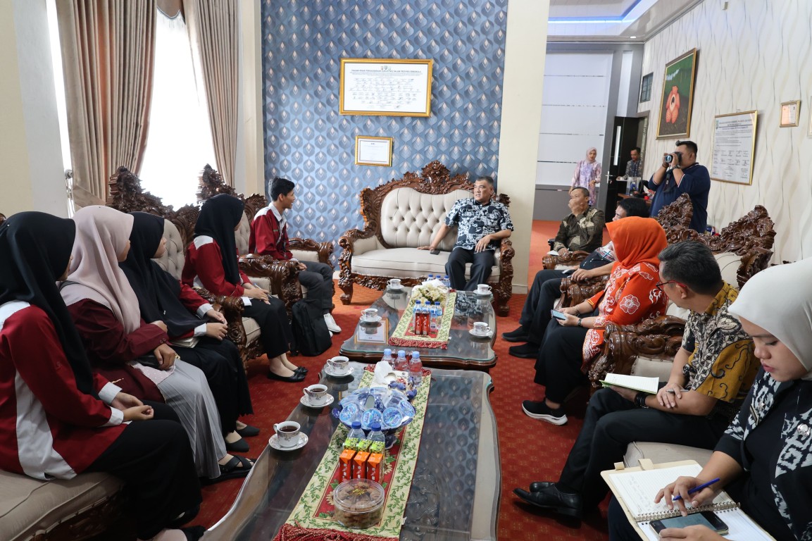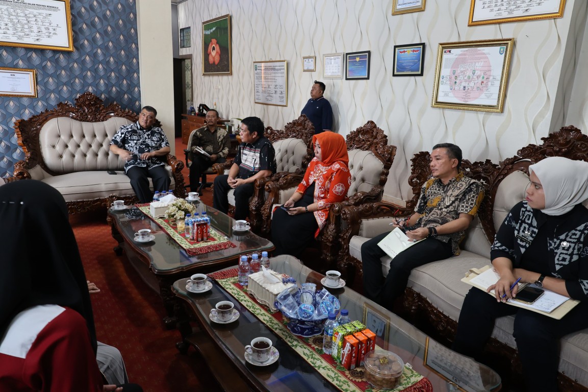 Bengkulu Tengah, MC Benteng - Pj Bupati Bengkulu Tengah Dr.Heriyandi Roni, M.Si di dampingi Asisten Bidang Ekonomi Eka Nurmeini, S.E., M.Pd., Kepala Dinas PMD Drs. Hendri Donal, S.H.,M.H., Kabag Pemerintahan dan Kasubbag Perekonomian terima audiensi Gallery Invenstasi Syariah (GIS) Universitas Islam Negeri Fatmawati Soekarno (UINFAS) di Ruang Kerja Bupati. Kamis (18/07/2024).