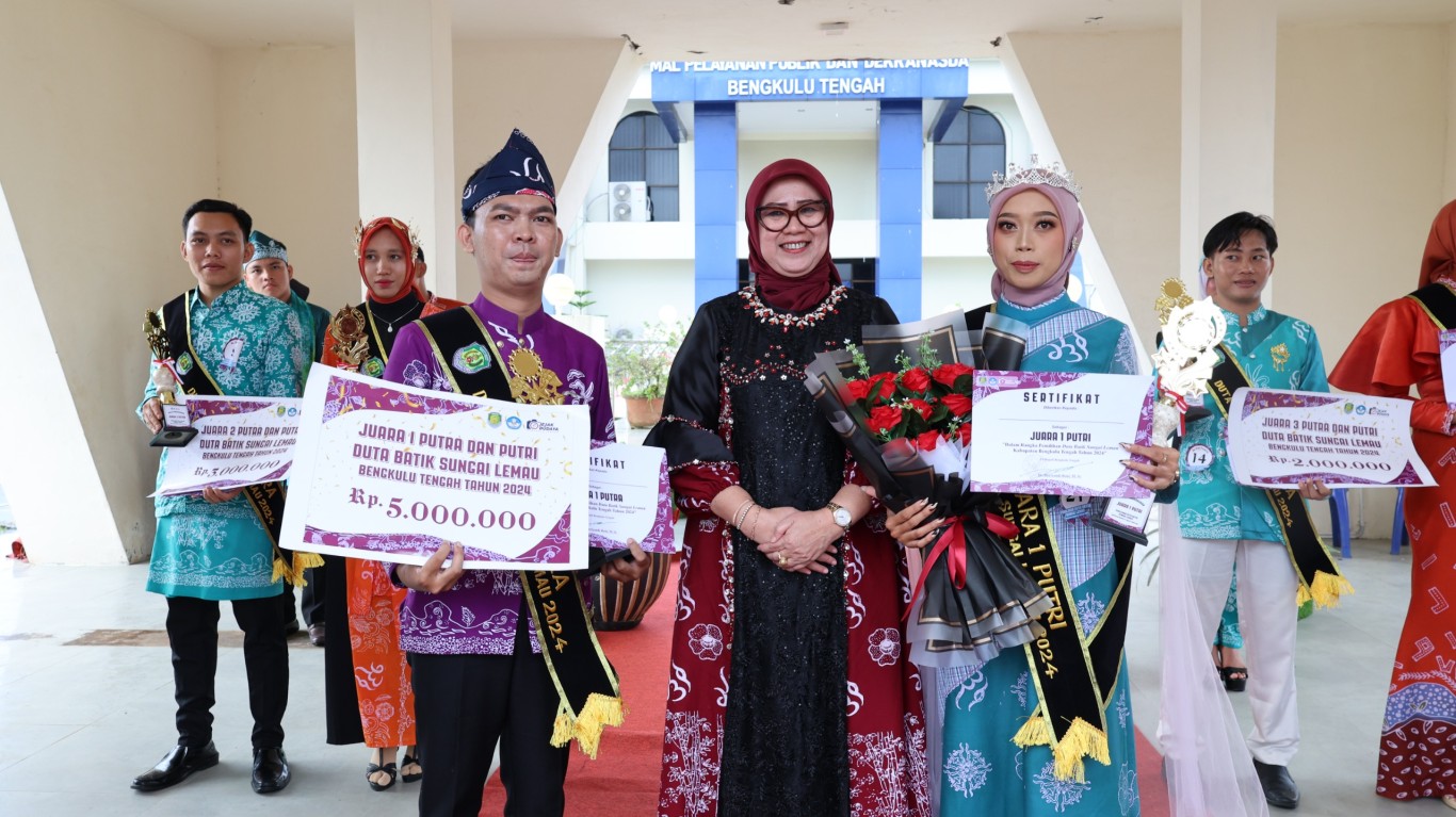 Bengkulu Tengah, MC Benteng - Pemerintah Kabupaten Bengkulu Tengah melalui Dinas Pendidikan dan Kebudayaan menggelar acara Pemilihan Duta Batik Sungai Lemau Sekaligus Launching Batik Sungai Lemau Sebagai Batik Khas Bengkulu Tengah di Halaman Mall Pelayanan Publik (MPP) Bengkulu Tengah. Senin (16/12/2024)